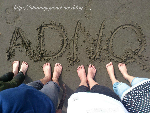最後,來沙灘一定要玩一下的沙灘畫,不過我們加上了我們的四雙光腳丫